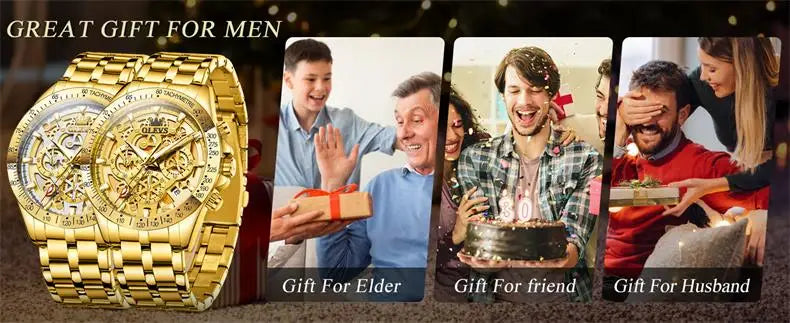 OLEVS Men's Watches Gold Luxury Hollow Out Style Original Quartz Watch for Man Waterproof Luminous Chronograph Date 24 Hours